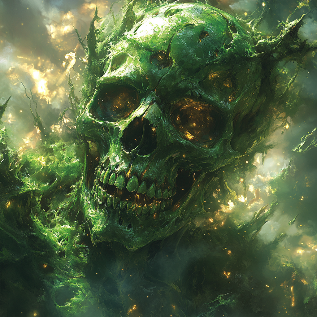 Послышался жуткий, многослойный скрежет - звук тысяч костей, шевелящихся одновременно. Из-под зловонной почвы, разрывая паутину хищных корней, начали подниматься десятки фигур. Это были трупы орков, обтянутые волшебными зелёными светящимися нитями, сбрасывающие с себя ветки и мох, словно ветхие одеяния. Они встали в неестественно чёткий строй перед Сибиллой, замерши по стойке «смирно». В их глазах - вернее, в глазницах - плясали глянцевые зелёные огоньки, отражавшие безвольную покорность. Они напоминали экипаж корабля-призрака, чья единственная отныне цель - слепо служить своему капитану. От них исходил торфяно-болотевый запах.